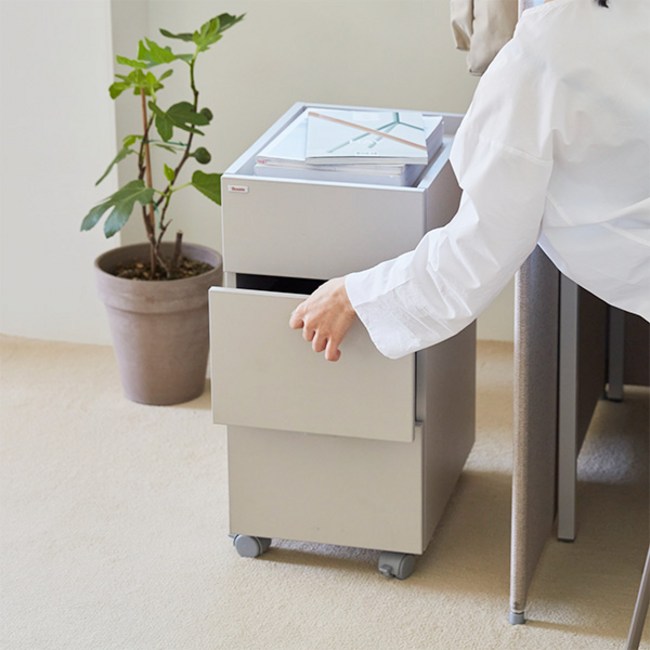 로이모노 책상서랍과 유사하지만, 바퀴가 달려 있어 이동이 자유로운 이동형 서랍입니다. 필요에 따라 원하는 곳으로 옮겨 사용할 수 있어 유연한 공간 활용이 가능합니다. 문서나 소품을 수납하기에 용이하며, 로이모노 책상 아래에 넣어 사용하거나 별도로 보조 서랍으로 활용하기에도 좋습니다. 공간 활용에 대한 유연성을 중요시한다면 좋은 선택이 될 수 있습니다. -